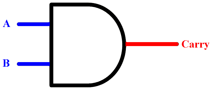“Carry” is AND of input A,B as shown below.