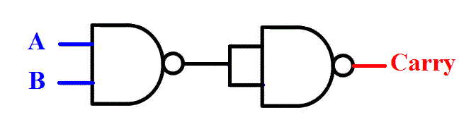 In other word INVERT of NAND gate is AND gate, and schematic of “Carry” using NAND gate is given below.