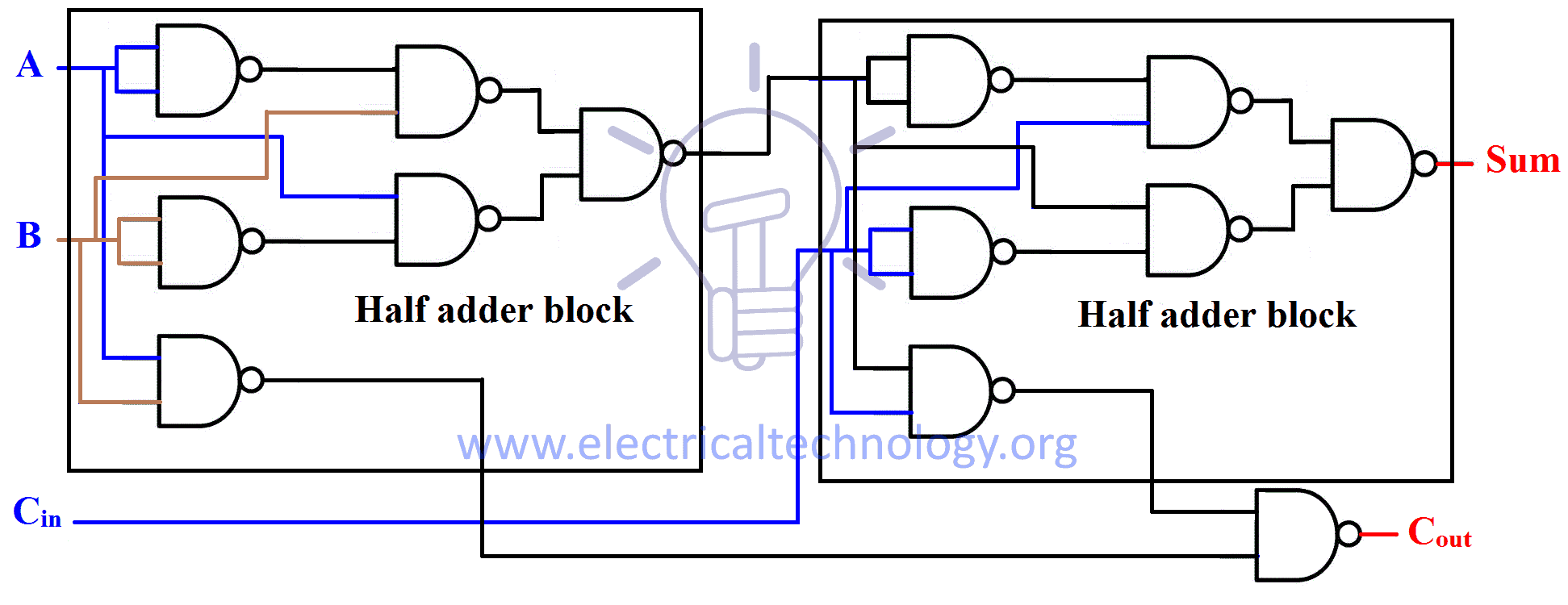 Sum = CinXOR (HA_sum_1) (HA_sum_1; sum of first half adder whose input is A,B)