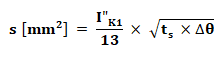 - Δθ is the maximum admissible temperature rise [°C] – for bare copper Δθ = 150 °C