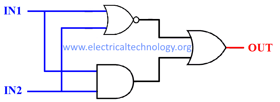 OUT = ( I̅N̅1̅ & I̅N̅2̅) + (IN1 & IN2) or OUT = (I̅N̅1̅ + IN2) & (IN1 + I̅N̅2̅)