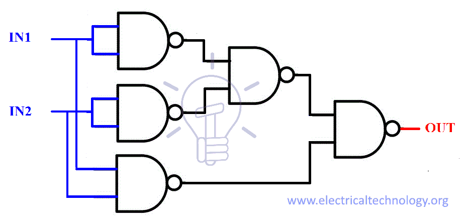 When both inputs are different, then the High state will flow to NMOSFET’s gate and the LOW state will flow to NMOSFET’s source to build up potential at its gate, which will switch it ON. And the LOW state “0” will flow out as output.