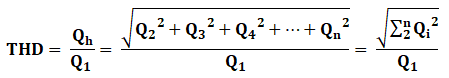 Where Q1 represents the rms value of the voltage or of the current at industrial frequency and Q the rms value of the voltage or of the current.