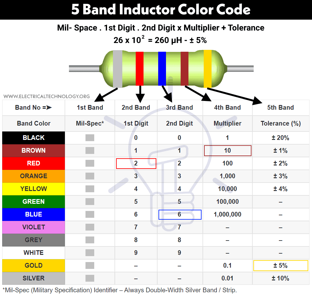 How to know the Value of Inductance of an Inductor using Standard & Color Codes – Calculators & Examples