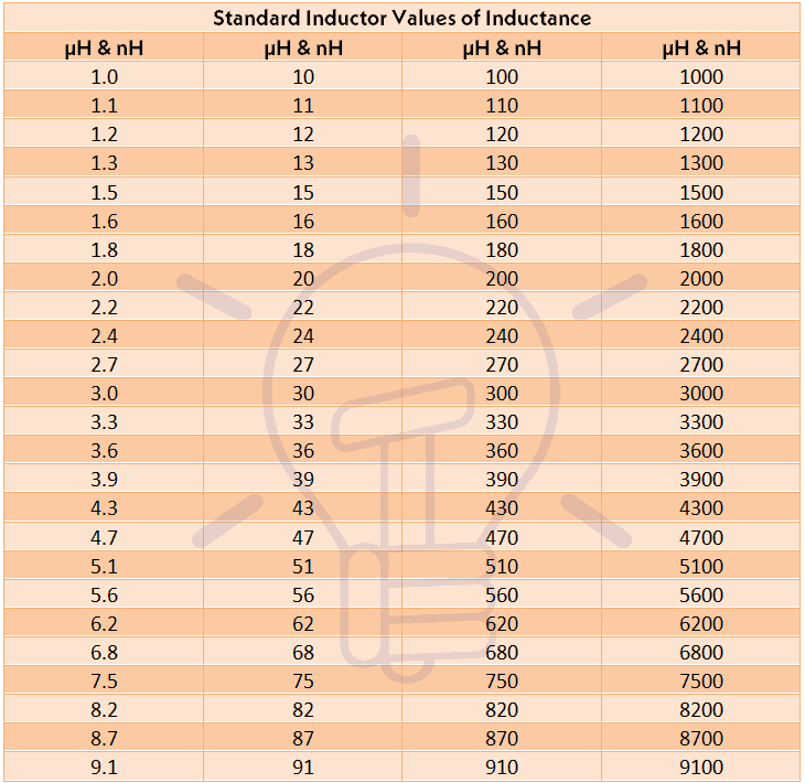 Following is the table of most common used and available inductors both in µH (microhenries) and nH (nanohenries).