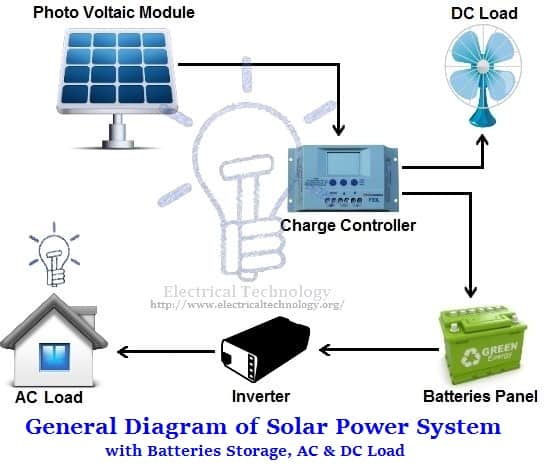 For storage batteries are required along with the charge controller. Standard diagram for storage will look like this…