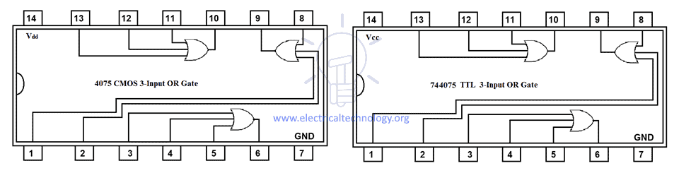 4075 CMOS and 744075 TTL OR Gate IC (3-Input)