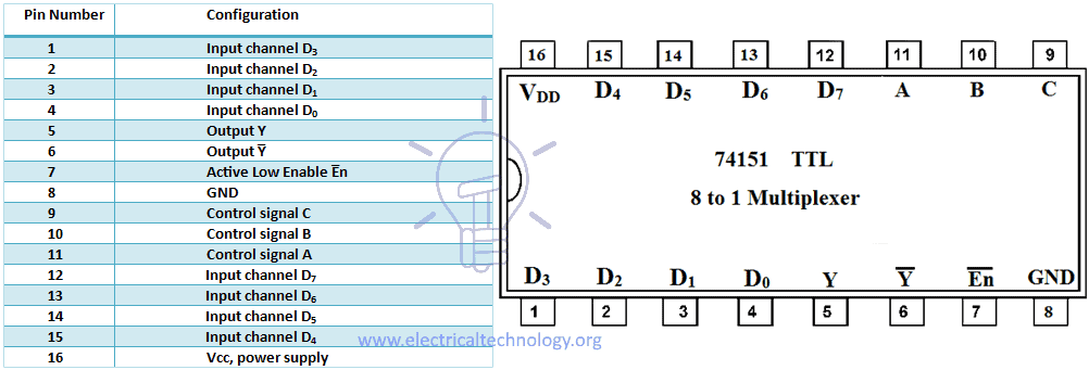74151 TTL 8 TO 1 Multiplexer IC & Pin Configurations