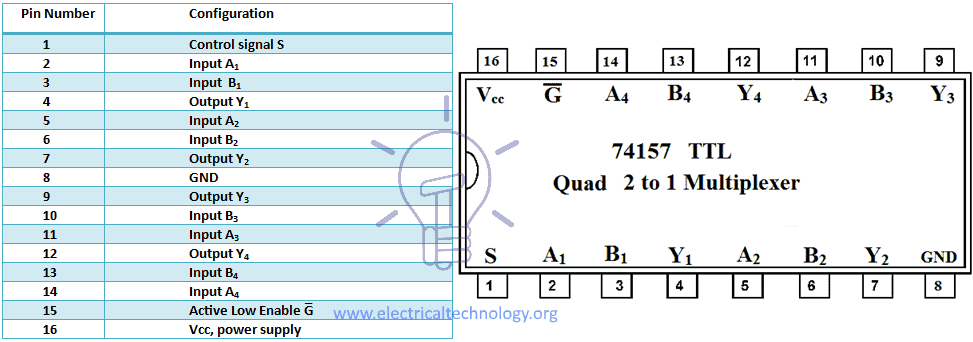 74157 TTL QUAD 2 TO 1 Multiplexer IC & Pin Configurations