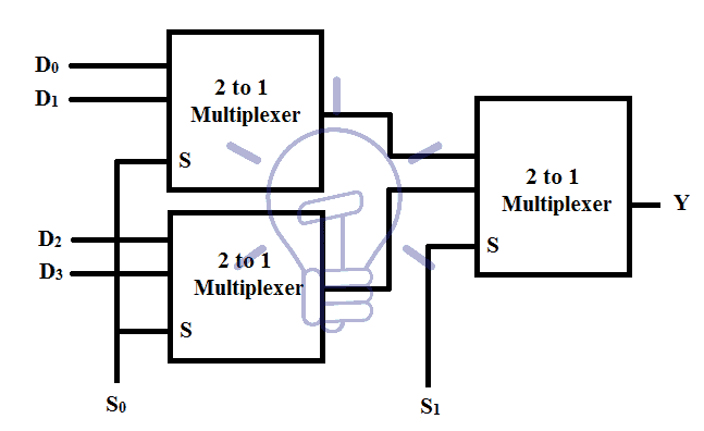 There are two configuration of making 4 to 1 MUX using 2 to 1 Muxes.