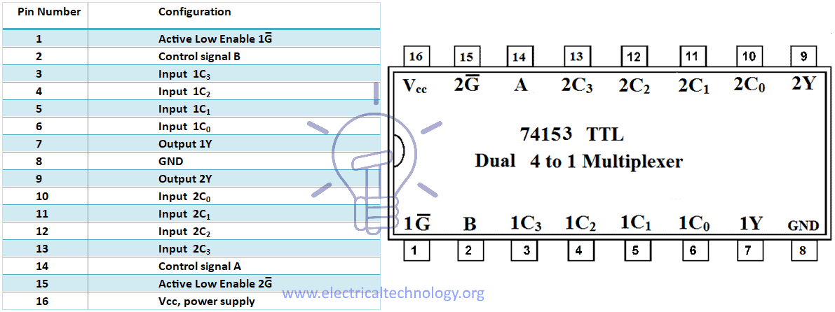 74153 TTL Dual 4 TO 1 Multiplexer IC & Pin Configurations