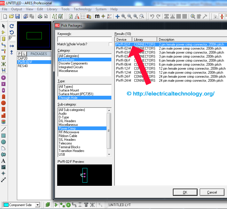 As you can see there are categories and types. Selected the desired category and then select the appropriate type and all the components matching the above criteria is will show up in the white space as shown in the above window.