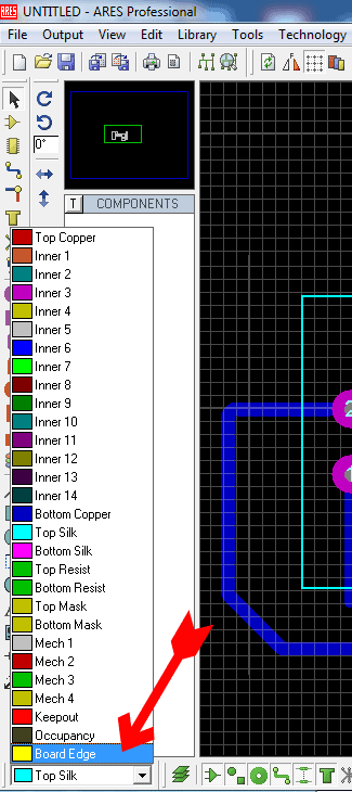 Now select the “board Edge” layer form the left bottom layer selecting Drop down menu.