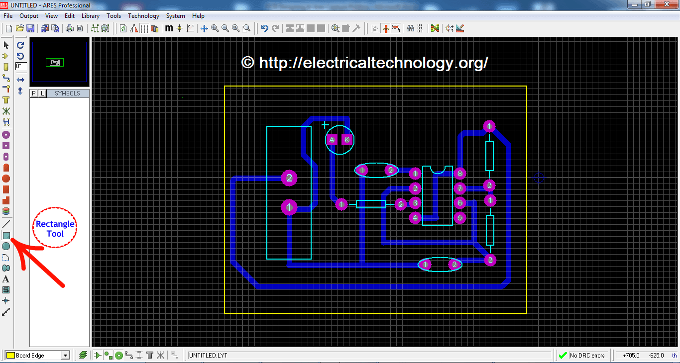 After selecting the board edge layer, draw a rectangle around your PCB art work. This will be your PCB Board dimensions.