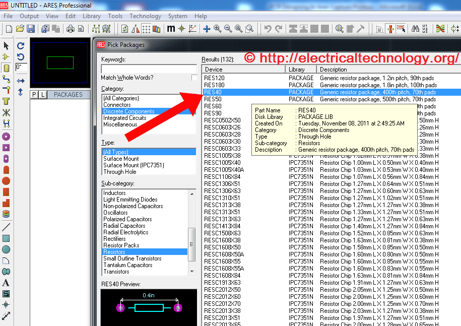Double click on that RES40 package and this package will be added to the left side vertical white space where Packages is written on the design window.