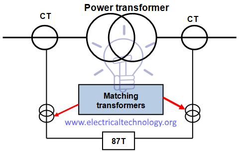 When one side of the transformer is star-connected with an earthed neutral, the matching transformers on this side are delta-connected, so that the residual currents that would be detected upon occurrence of an earth fault outside the transformer are cleared.