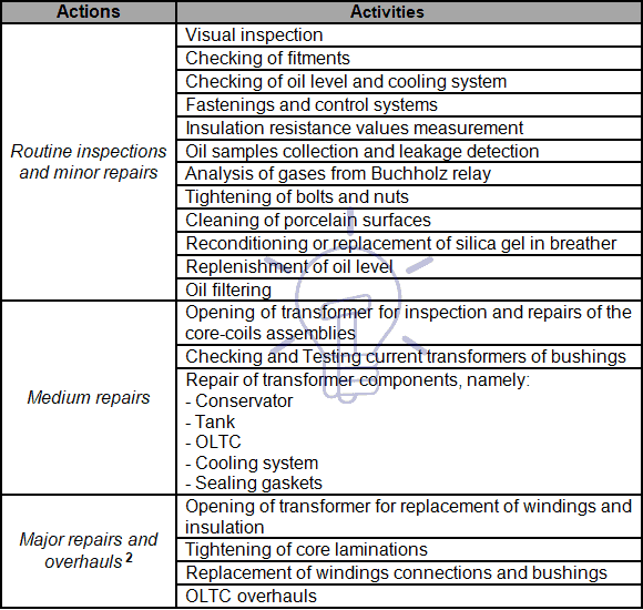 The actions of preventive maintenance of transformers may be synthesized as follows: