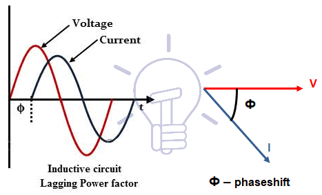 If inductance (XL = 2πfL = ωL) prevails current will be lagging (Figure 2) and reactive power is called inductive power.