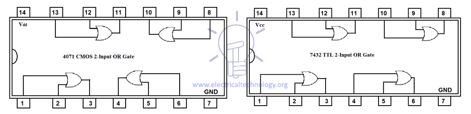TTL and CMOS Logic OR Gate IC’s